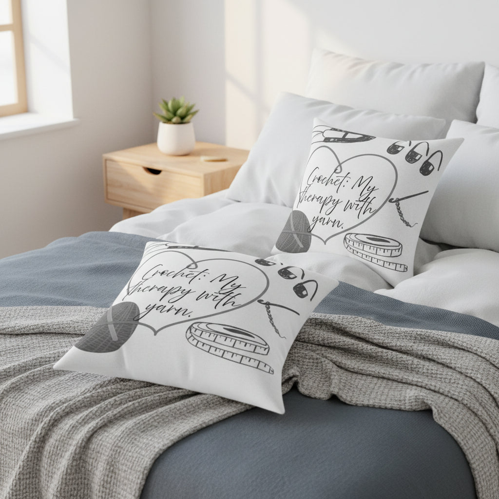 "Crochet: My Therapy with Yarn" Square Throw Pillow